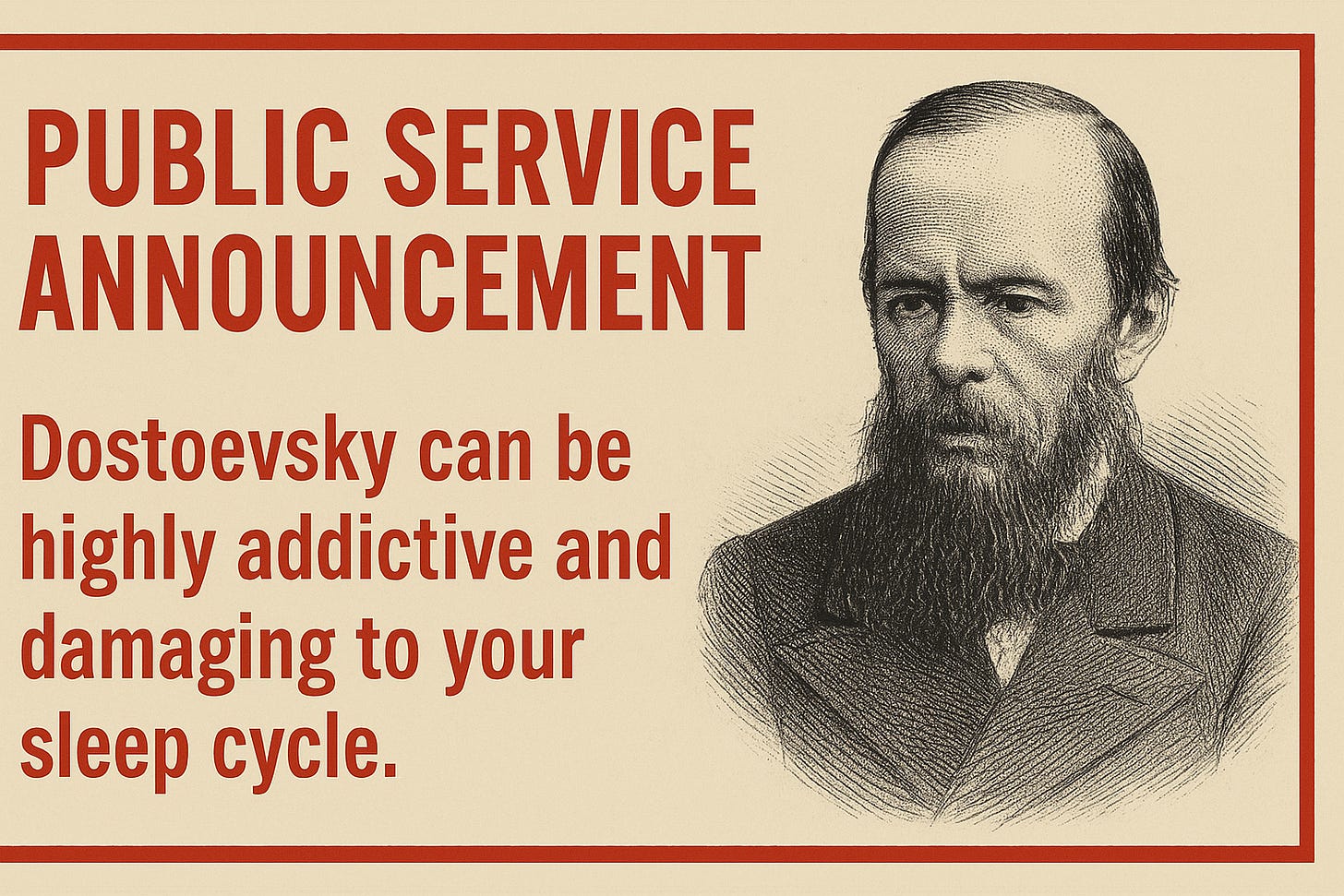 Public Service Announcement: Dostoevsky can be highly addictive and damaging to your sleep cycle. Think before you read - or you might just find yourself thinking a little too much afterwards!